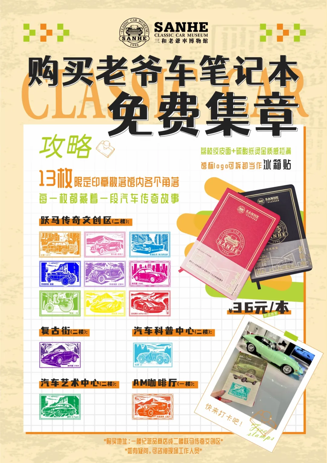 新年之际,三和老爷车博物馆文创上新,两枚「三和馆建吊坠冰箱贴」,将一段段浓缩的机械传奇,悬挂于节日的记忆之中。更有「老爷车文创集章册」,汇集馆藏13辆经典车印章,等待真正的车迷解锁!此外,1F纪念品商店、2F跃马传奇文创区域购物满99元加1元即可换购小车皮质挂件惊喜福利!