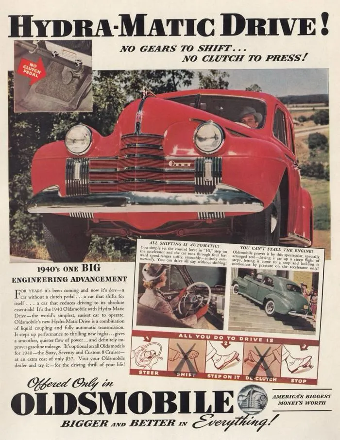 1939年,通用汽车旗下奥兹莫比尔推出全球首款大规模量产的全自动变速箱——Hydra-Matic。它采用液力变矩器、行星齿轮与液压控制结构,首次在其Series 60量产车型上实现了车辆行驶中无需离合器与手动换挡操作的自动换挡功能,这一创新标志着汽车传动系统正式迈入自动化时代。